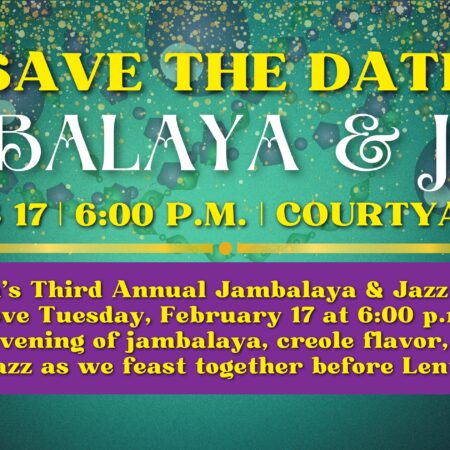 St. John’s Third Annual Jambalaya & Jazz celebration will take place on Fat Tuesday/Shrove Tuesday, February 17, at 6:00 p.m. Parishioners, friends, and neighbors of all ages are invited to join us for an evening of vibrant flavors and soulful music as we gather to feast together before the season of Lent.